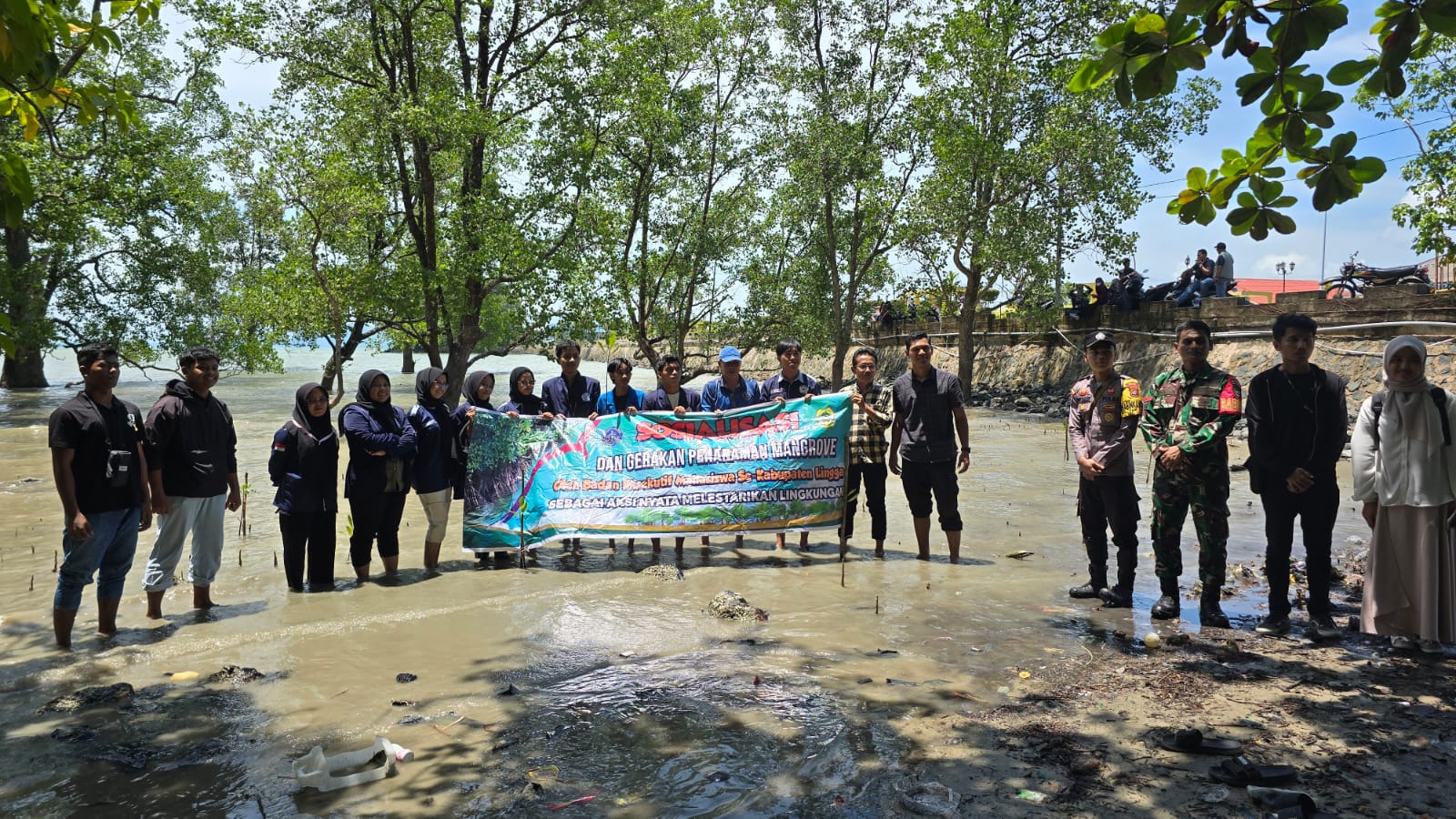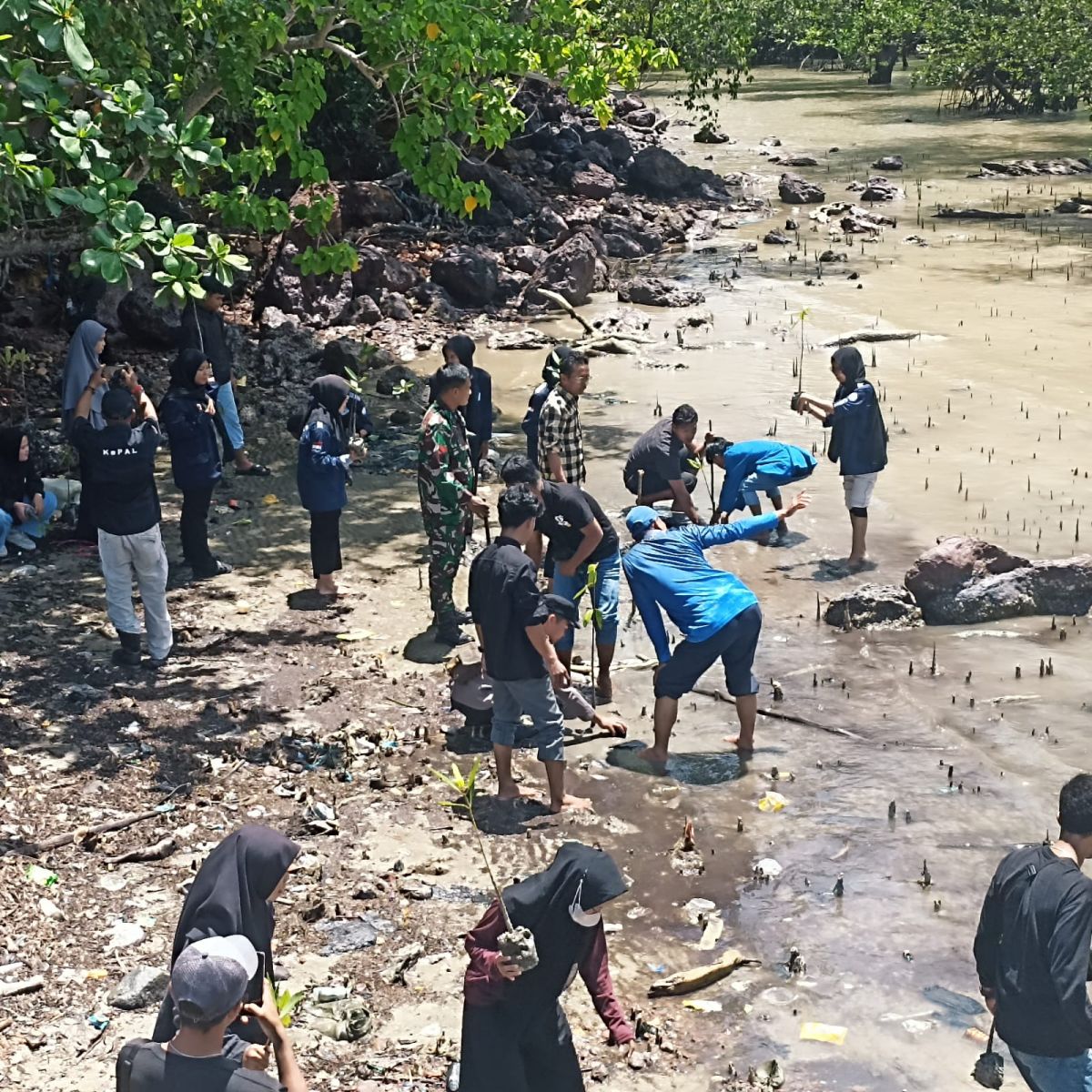 "Penanaman bibit mangrove atau upaya melakukan penghijauan kembali yang di pelopori adik-adik mahasiswa semua ini adalah bukti andil atau turut berperan dalam penyelamatan lingkungan terutama di wilayah pesisir. Penebangan liar atau perambahan hutan mangrove yang sering terjadi tentu sangat berdampak kepada ekosistem mangrove sebagai penyangga kehidupan biota laut serta lingkungan yang terus menerus terjadi abrasi dan erosi diwilayah lingkungan pesisir sekarang ini", tutur ikhlas.