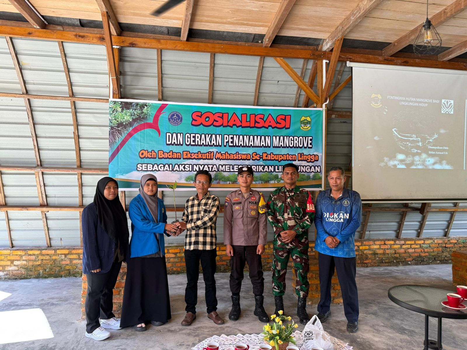 KILASRIAU.com - Aliansi Badan Ekskutif Mahasiswa (BEM) se- kabupaten Lingga adakan sosialisasi dan gerakan penanaman mangrove di Cafe Resto Mading, Sabtu (18/10/25).