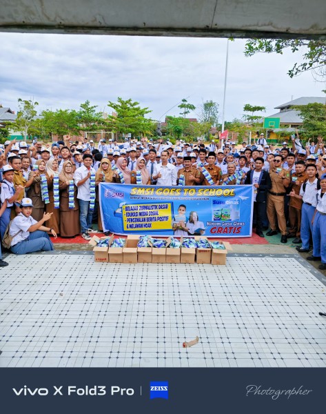 SMSI Inhil Gelar “Goes To School” di SMKN 2 Tembilahan, Bagikan Susu Gratis dan Edukasi Media