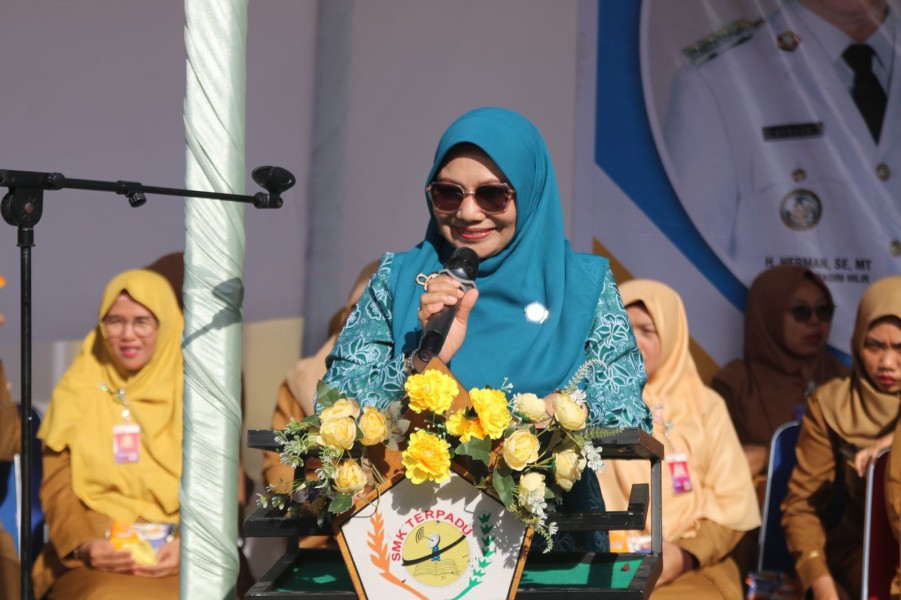 KILASRIAU.com - Ketua Tim Penggerak Pemberdayaan dan Kesejahteraan Keluarga (TP PKK) Kabupaten Indragiri Hilir, Hj. Katerina Susanti, menghadiri kegiatan Gerakan Kampanye B2SA (Beragam, Bergizi, Seimbang, dan Aman) Goes to School serta Germas (Gerakan Menanam di Sekolah) yang digelar di SMKN 1 Tembilahan, Selasa 21 Oktober 2025.