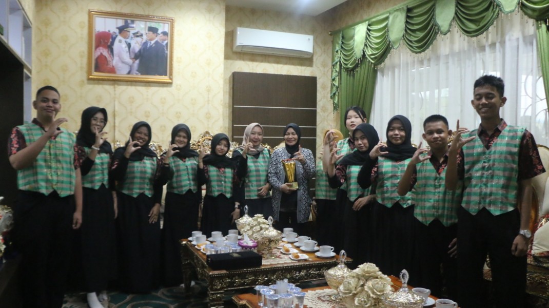 Ketua Dekranasda Inhil Sambut Kedatangan LCC SMAN 1 Tembilahan Hulu