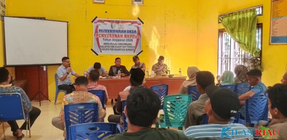 KUANTAN TENGAH (KilasRiau.com) – Pemerintah Desa Pulau Kedundung, Kecamatan Kuantan Tengah, Kabupaten Kuantan Singingi, Riau, melaksanakan kegiatan Musyawarah Desa (Musdes) dalam rangka penyusunan Rencana Kerja Pemerintah Desa (RKPDes) Tahun Anggaran 2026, pada Jumat (7/11/2025) siang. Kegiatan tersebut berlangsung di aula kantor desa setempat dengan dihadiri berbagai unsur pemerintahan dan masyarakat.