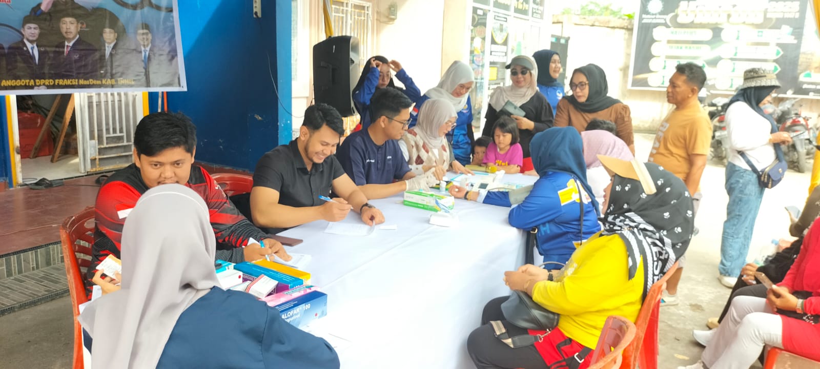 Kegiatan tersebut menjadi bagian dari rangkaian perayaan HUT ke-14 Partai NasDem yang mengusung semangat “14 Tahun Konsisten Membawa Arus Perubahan.” Antusiasme masyarakat tampak tinggi, di mana ratusan warga dari berbagai kalangan — mulai dari anak-anak, dewasa, hingga lansia — ikut berpartisipasi melakukan pemeriksaan dan konsultasi kesehatan.