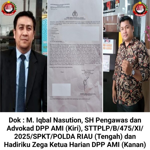 Pengawas DPP dan Pendiri AMI Minta Proses Hukum Dipercepat,Pengawas DPP dan sekaligus salah satu pendiri AMI, M. Iqbal Nasution, SH bersama Candra Sarlata, SH, dalam pernyataan resminya meminta kepolisian bertindak cepat dan memberi perhatian penuh atas kasus tersebut.