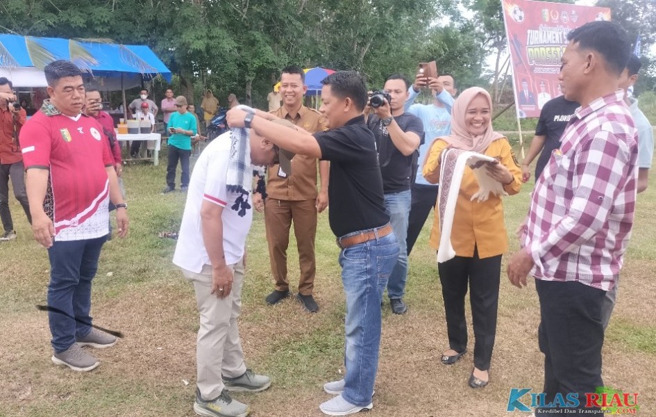 KUANTAN SINGINGI (KilasRiau.com) – Suasana hangat dan penuh kekeluargaan menyelimuti Lapangan Sepak Bola Porset, Desa Seberang Taluk, pada Selasa sore (25/11/2025). Pembukaan Turnamen Sepakbola PORSET CUP 2025 berlangsung meriah, ditandai dengan prosesi penyambutan adat berupa pengalungan sorban kepada tamu kehormatan.