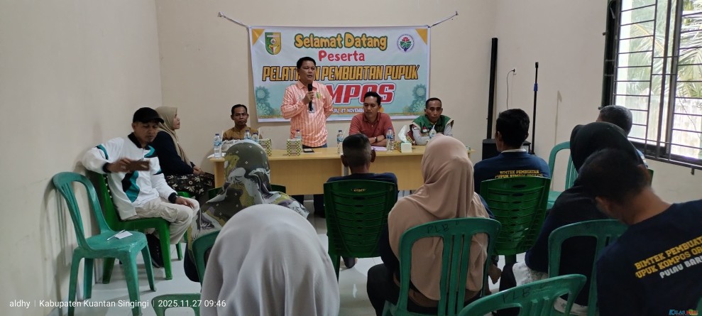 KUANTAN SINGINGI (KilasRiau.com) — Pemerintah Kecamatan Kuantan Tengah kembali menunjukkan komitmennya dalam memberdayakan masyarakat, khususnya di sektor pertanian. Hal ini dibuktikan dengan terlaksananya Pelatihan Pembuatan Pupuk Kompos di Desa Pulau Baru pada Kamis, 27 November 2025 di Aula Kantor Desa Pulau Baru, yang dibuka langsung oleh Camat Kuantan Tengah, Eka Putra, S.Sos., M.Si.