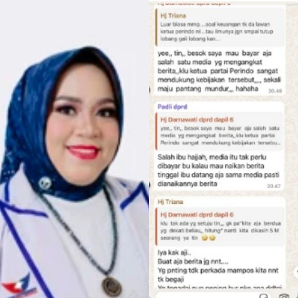 Dalam percakapan itu, anggota DPRD sekaligus Ketua Partai Perindo Inhil, Hj. Darnawati, menuliskan pesan yang dinilai publik mengarah pada praktik transaksi dengan media.