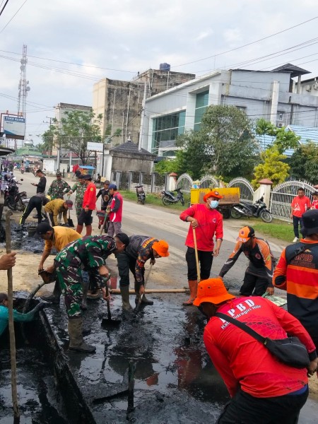 Aksi gotong royong ini difokuskan pada pembersihan saluran air, normalisasi parit, serta penataan lingkungan di titik-titik rawan banjir guna meminimalisir dampak bencana hidrometeorologi.
