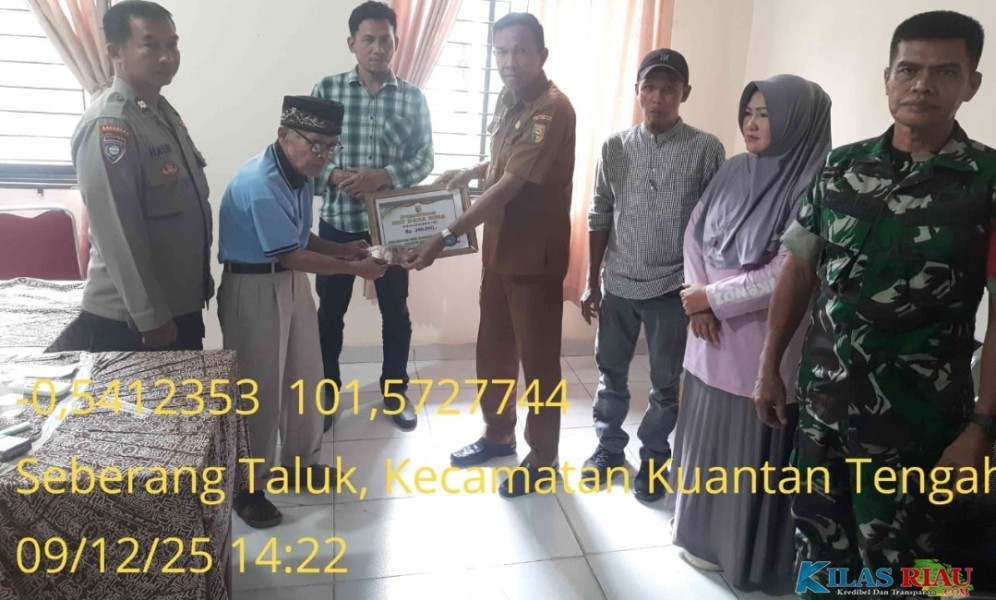 KUANTAN TENGAH (KilasRiau.com) — Pemerintah Desa Seberang Taluk, Kecamatan Kuantan Tengah, Kabupaten Kuantan Singingi, Riau kembali menyalurkan Bantuan Langsung Tunai Dana Desa (BLT-DD) kepada masyarakat penerima manfaat tahun 2025. Sebanyak 31 Keluarga Penerima Manfaat (KPM) tercatat menerima bantuan tersebut. Selasa (09/12/2025).