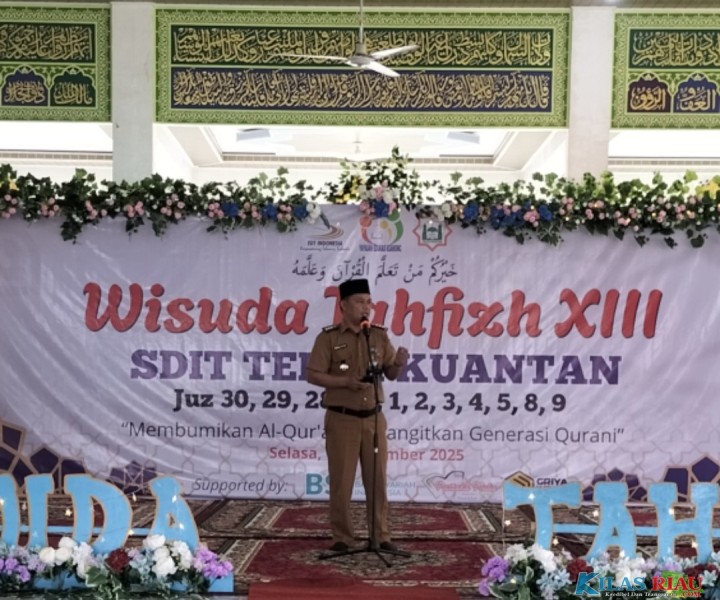 TELUK KUANTAN (KilasRiau.com) - Masjid Pondok Pesantren Syafa’aturrasul, Selasa pagi (16/12/2025), dipenuhi lantunan ayat suci Al-Qur’an yang mengalir tenang namun menggetarkan. Di hadapan para orang tua dan undangan, SDIT Teluk Kuantan menggelar Wisuda Tahfizh XIII, sebuah peristiwa yang menandai ikhtiar panjang anak-anak menjaga dan mencintai Kalam Ilahi sejak usia dini.