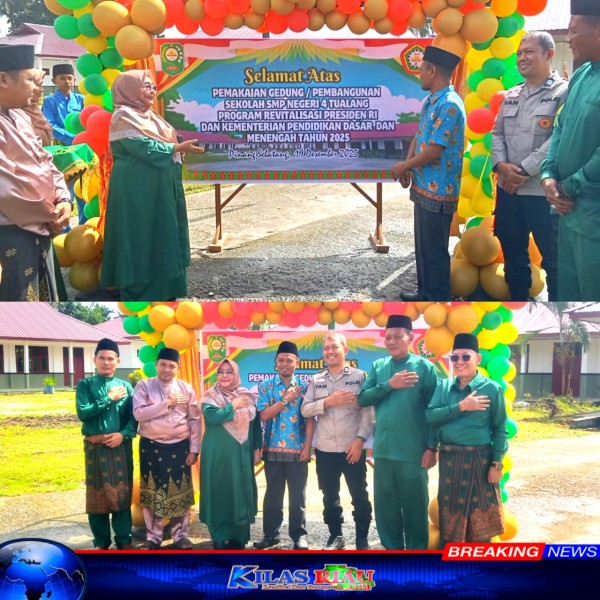 Siak, KilasRiau.com – SMP Negeri 4 Tualang menggelar acara syukuran dan peresmian pemakaian bangunan hasil revitalisasi di halaman sekolah. Kegiatan ini menjadi penanda resmi selesainya pembangunan sarana dan prasarana pendidikan yang bersumber dari Program Revitalisasi Sekolah Pemerintah Pusat di Kampung Pinang Sebatang, Kecamatan Tualang, Kabupaten Siak, Jumat (19/12/2025).