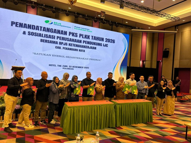 KILASRIAU.com - Upaya mempercepat penanganan kecelakaan kerja peserta tanpa biaya sekaligus mempermudah akses layanan medis darurat, BPJS Ketenagakerjaan Kantor Cabang (Kacab) Pekanbaru Kota melakukan Memorandum of Understanding (MoU) dengan 40 Rumah Sakit (RS) dan Fasilitas Kesehatan (Faskes), yakni Klinik Pratama, Klinik dan Puskesmas di Riau menjadi Pusat Layanan Kecelakaan Kerja (PLKK), Senin (22/12/2025) di Ballroom The Zuri Hotel Pekanbaru.