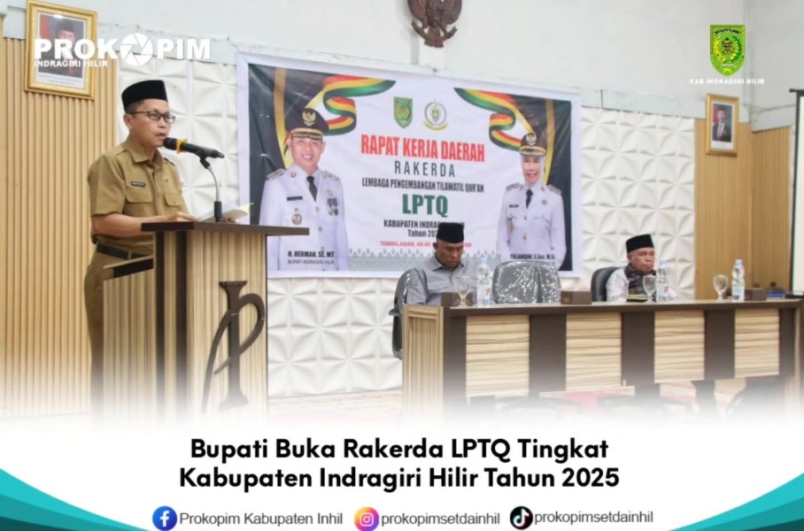 KILASRIAU.com - Bupati Indragiri Hilir diwakili Asisten Pemerintahan dan Kesra Setdakab Inhil H. Fajar Husin yang juga menjabat sebagai Ketua Lembaga Pengembangan Tilawatil Qur'an (LPTQ) Kabupaten Inhil, membuka Rapat Kerja Daerah (Rakerda) Lembaga Pengembangan Tilawatil Qur'an (LPTQ) Tingkat Kabupaten Indragiri Hilir Tahun 2025.