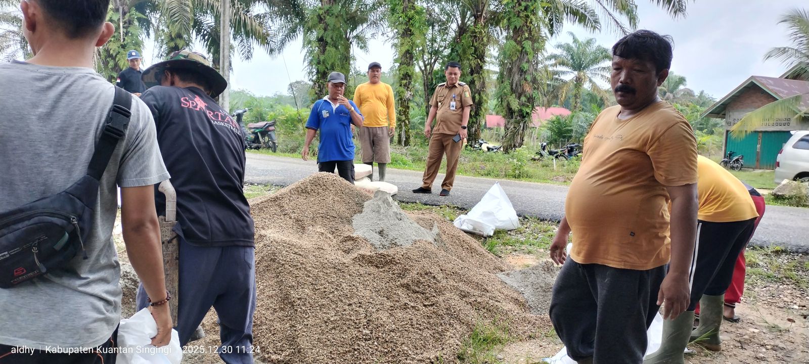 TITIAN MODANG KOPAH (KilasRiau.com)– Usai membuka pelatihan pembuatan pupuk kompos Bokashi di Desa Titian Modang Kopah, Kecamatan Kuantan Tengah, Camat Kuantan Tengah Eka Putra, S.Sos., M.Si. langsung meninjau kegiatan gotong royong warga membangun tanggul sementara di bantaran Sungai Geringging, Selasa (30/12/2025).