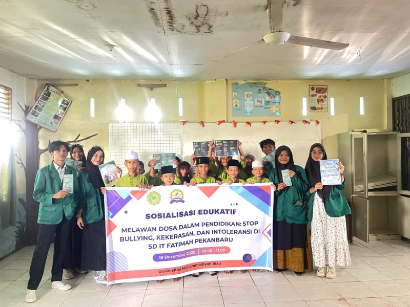 KILASRIAU.com - Mahasiswa Universitas Muhammadiyah Riau (UMRI) Fakultas Ilmu Komputer, Program Studi Teknik Informatika, melaksanakan kegiatan edukasi di SD IT Fatimah Pekanbaru dengan mengangkat tema tiga dosa besar pendidikan, yaitu intoleransi, kekerasan, dan perundungan (bullying).