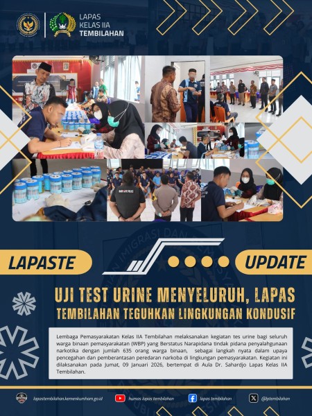 Berdasarkan hasil pemeriksaan, seluruh sampel urine yang diuji menunjukkan hasil negatif, sehingga dapat menjadi indikator positif bahwa pembinaan, pengawasan, serta pengendalian yang dilakukan berjalan dengan baik dan konsisten.