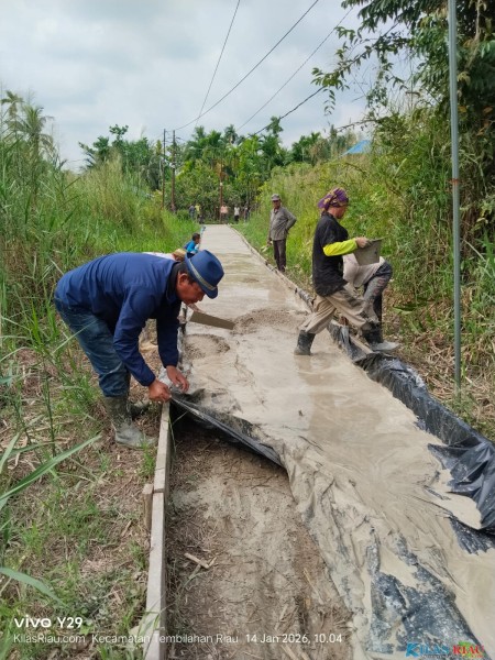 KILASRIAU.com – Warga Emban Sari, Kelurahan Seberang Tembilahan, Kecamatan Tembilahan, Kabupaten Indragiri Hilir (Inhil), melaksanakan pembangunan jalan penghubung menuju Kampung Baru secara swadaya, Rabu (14/1/2026).