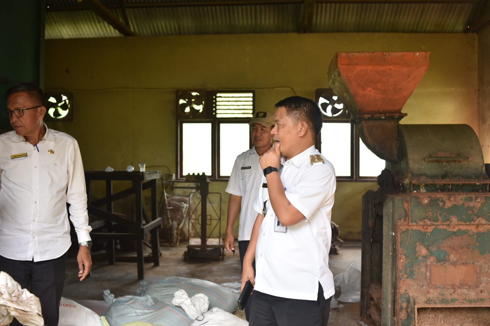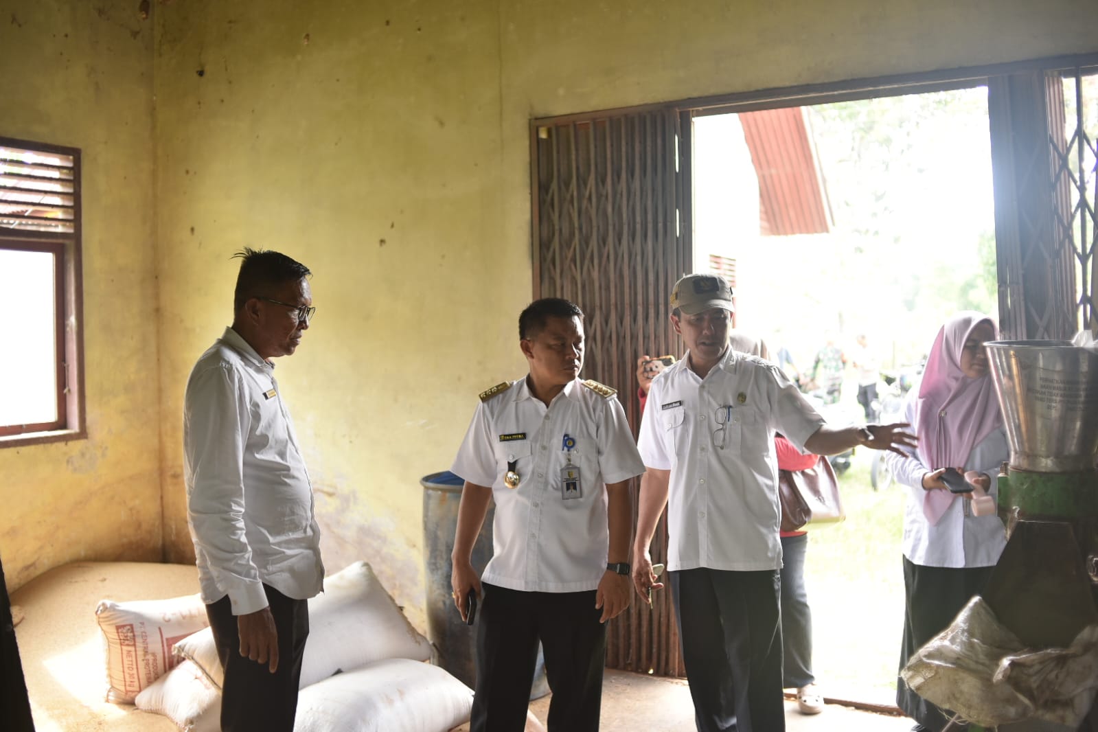 Usai kegiatan panen, Camat Kuantan Tengah melanjutkan agenda dengan meninjau bangunan pabrik pelet yang berada di wilayah Desa Seberang Taluk Hilir. Bangunan tersebut diketahui telah lama terbengkalai dan tidak difungsikan, meski masih memiliki fasilitas yang tergolong lengkap, termasuk mesin pelet.