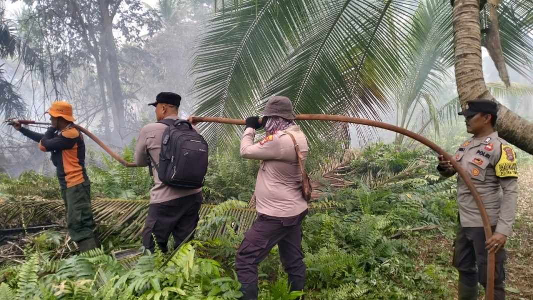 Personel Polsek Tempuling Laksanakan Pendinginan Titik Hotspot di Tanjung Pidada Meski Tengah Berpuasa