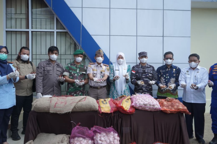 Adapun komoditas yang dimusnahkan terdiri dari bawang merah sebanyak 1.115 karung besar seberat 22,3 ton dan 1.776 karung kecil seberat 17,76 ton, bawang bombai 356 karung seberat 3,56 ton, bawang putih 220 karung seberat 4,4 ton, serta cabai merah kering sebanyak 47 karung seberat 0,37 ton.