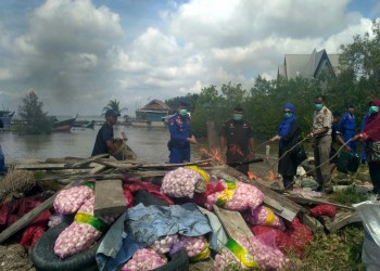 Dijelakan Kasat Pol Air, barang bukti yang dimusnahkan tersebut terdiri dari 50 bal pakai bekas, 600 kampit bawang merah dan 200 kampit bawang putih. Semuanya berasal dari Batu Pahat, Malaysia.