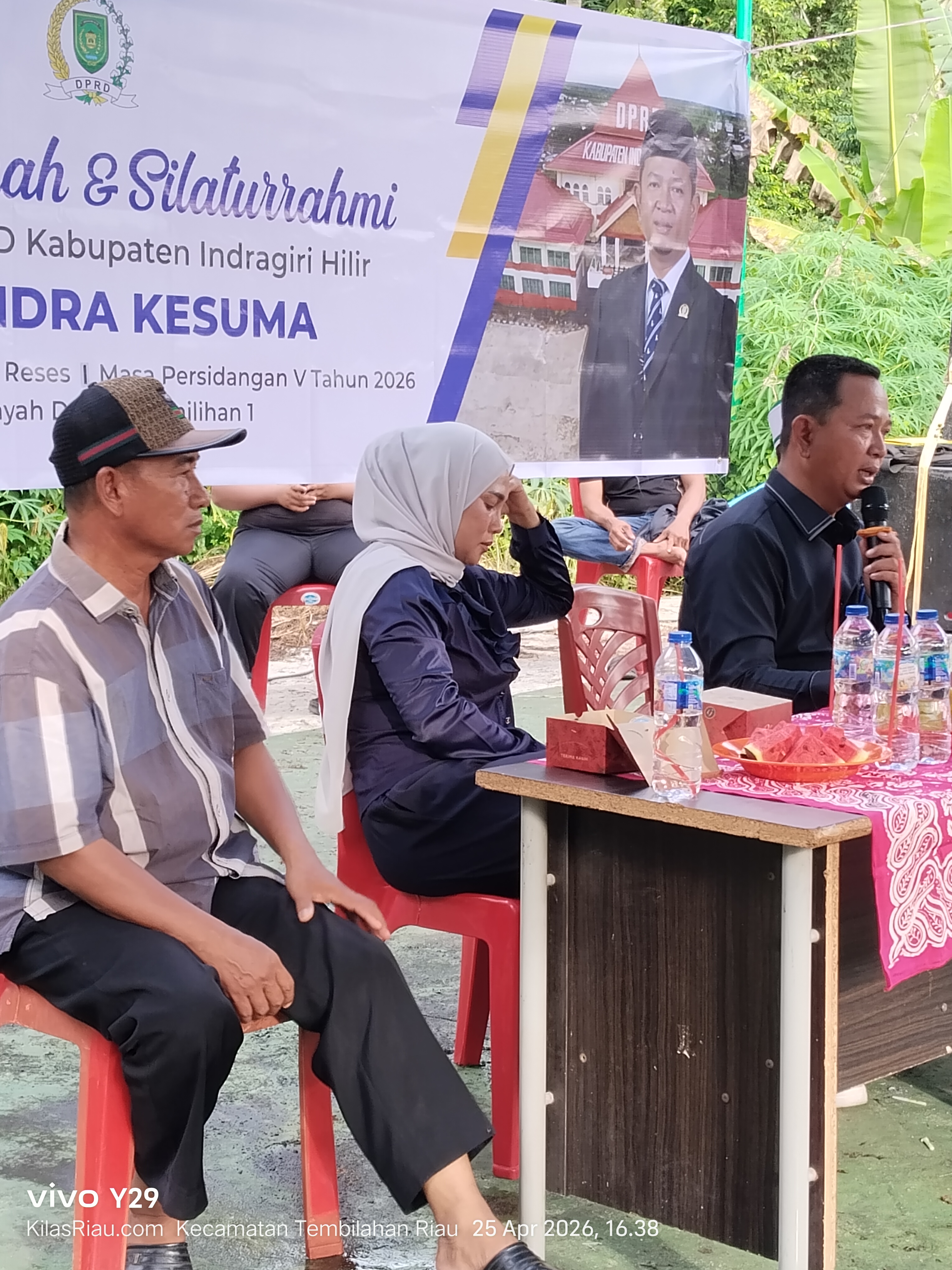 Kilasriau.com - Anggota DPRD Kabupaten Indragiri Hilir, Edy Indra Kesuma, melaksanakan kegiatan reses di lapangan voli Kelurahan Seberang Tembilahan Selatan, Kecamatan Tembilahan, Sabtu (25/4/2026).