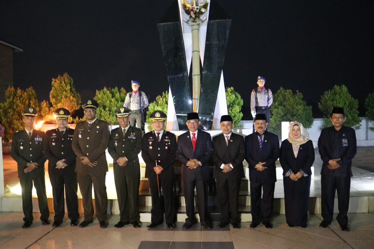 KILASARIAU.com - Bupati Kabupaten Inhil mengikuti apel kehormatan dan renungan suci dalam keheningan di Taman Makam Pahlawan Yudha Bakti, Tembilahan Hulu, Sabtu (17/8/2019) malam.