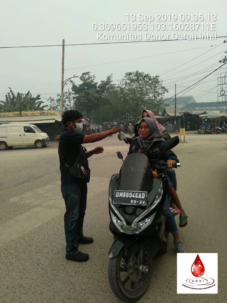 KILASARIAU.com - Komunikasi Donor Darah Inhil Melaksanakan kegiatan sosial dengan membagikan masker di Jalan Sungai Beringin Tembilahan, Kecamatan Tembilahan, Sabtu (14/09/2019).