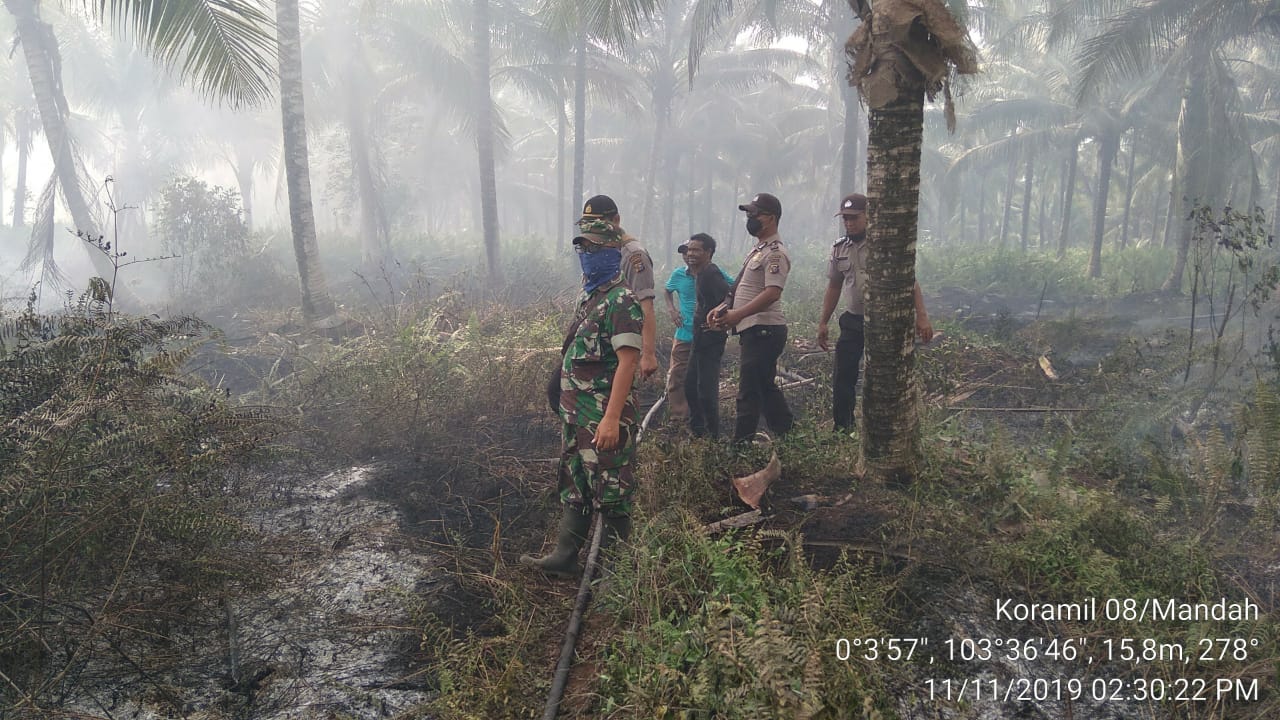 KILASRIAU.com, Mandah -- Saat Pjs Danramil 08/Mandah Pelda Suryadi melaksanakan pengecekan titik hospot dilokasi perkebunan kelapa dan semak belukar milik masyarakat Dusun Bagong Alang, Desa Belaras Barat Dusun, Parit Baru Mendahara, Kecamatan Mandah, ditemukan titik api.