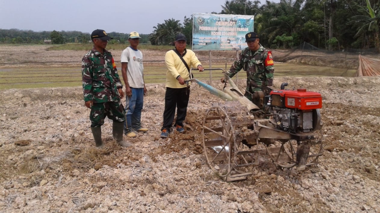 Dalam kesempatan itu para babinsa dan pemilik lahan bersama melakukan pengolahan lahan yang sangat keras. Karena sudah lama tidak turun hujan, dan kebetulan lahan juga lama tidak diolah.