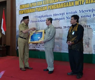 KILASRIAU.com - Bupati Indragiri Hilir HM. Wardan menerima piagam penghargaan peraih opini WTP atas LKPD tahun 2018, acara tersebut disejalankan dengan Seminar APBN dan Kebijakan Dana Transfer Tahun Anggaran 2020, Bertempat di Ballroom Hotel Aryaduta Pekanbaru Selasa (29/10/2019).