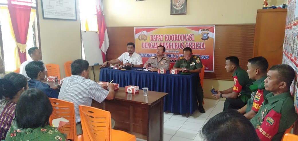 KILASRIAU.com, Kemuning - Danramil 09/Kemuning, Kapten Arh Zaenuri berserta anggota menghadiri Rapat Koordinasi Pengamanan menyambut Natal 2019 dan Tahun baru 2020 di Aula Polsek Kemuning, Kamis (12/12/2019).