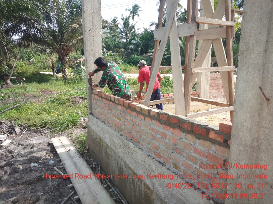 Danpos Pelda Poniman mengatakan bahwa pembangunan sudah memasuki proses penembokan dinding Musholla.