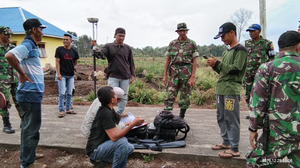Pengukuran dilaksanakan mulai Pukul 09.00 sampai Pukul 17.00 Wib. Adapun anggota yang melakukan pengukuran diantaranya, Sertu Paryono agt log Dim 0314/inhil, Serda Adi Marta Prov Dim 0314/inhil, Rahmad dari BPN Kab inhil dan Rico dari BPN Kab inhil.