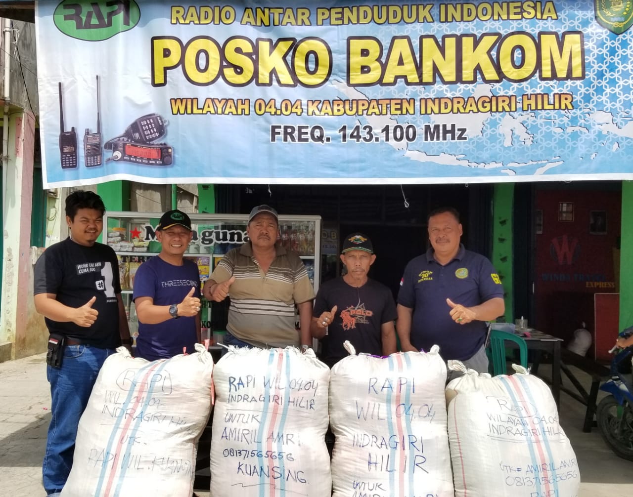 KILASRIAU.com - Pengurus Wilayah Radio Antar Penduduk Indonesia (RAPI) Wilayah 04.04 Kabupaten Indragiri Hilir (Inhil) Provinsi Riau, dalam Tahap kedua mengirimkan sebanyak 4 (empat) karung besar (bal), Sabtu (18/01/2020).
