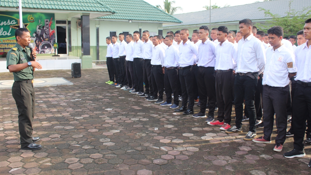 "Mulai belajar tanamkan kekompakan dengan saling mengingatkan sesama teman. Karena kalau sudah di sana, kalian bukan lagi membawa nama desa atau kecamatan kalian, melainkan membawa nama Kodim 0314/Inhil," sebut Pasi Pers Kapten Inf Riswanto.