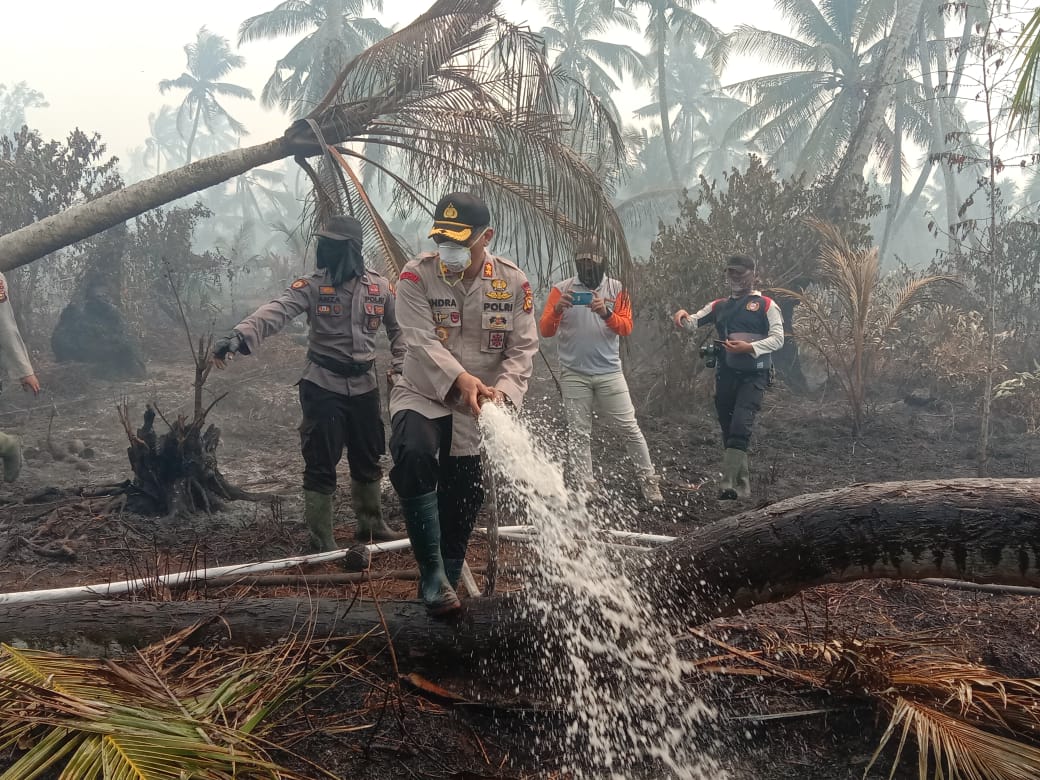 Kapolres Kabupaten Inhil, Indra Duaman Sihaan SIK terjun langsung kelapangan. Bukan hanya memberi contoh, tetapi mencontohkan kepada jajarannya dan masyarakat sekitar tentang menangani Karhutla ini.