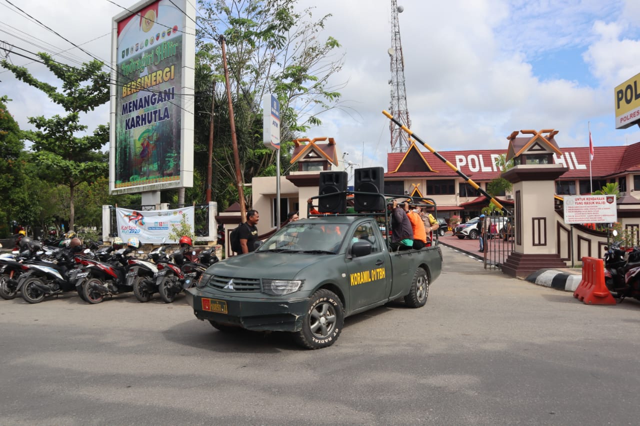 Seusai gelar apel, Tim gabungan menggunakan kendaraan roda 4 berkeliling Tembilahan dan memberikan informasi menggunakan pengeras suara dengan himbauan untuk mencegah Virus Corona.