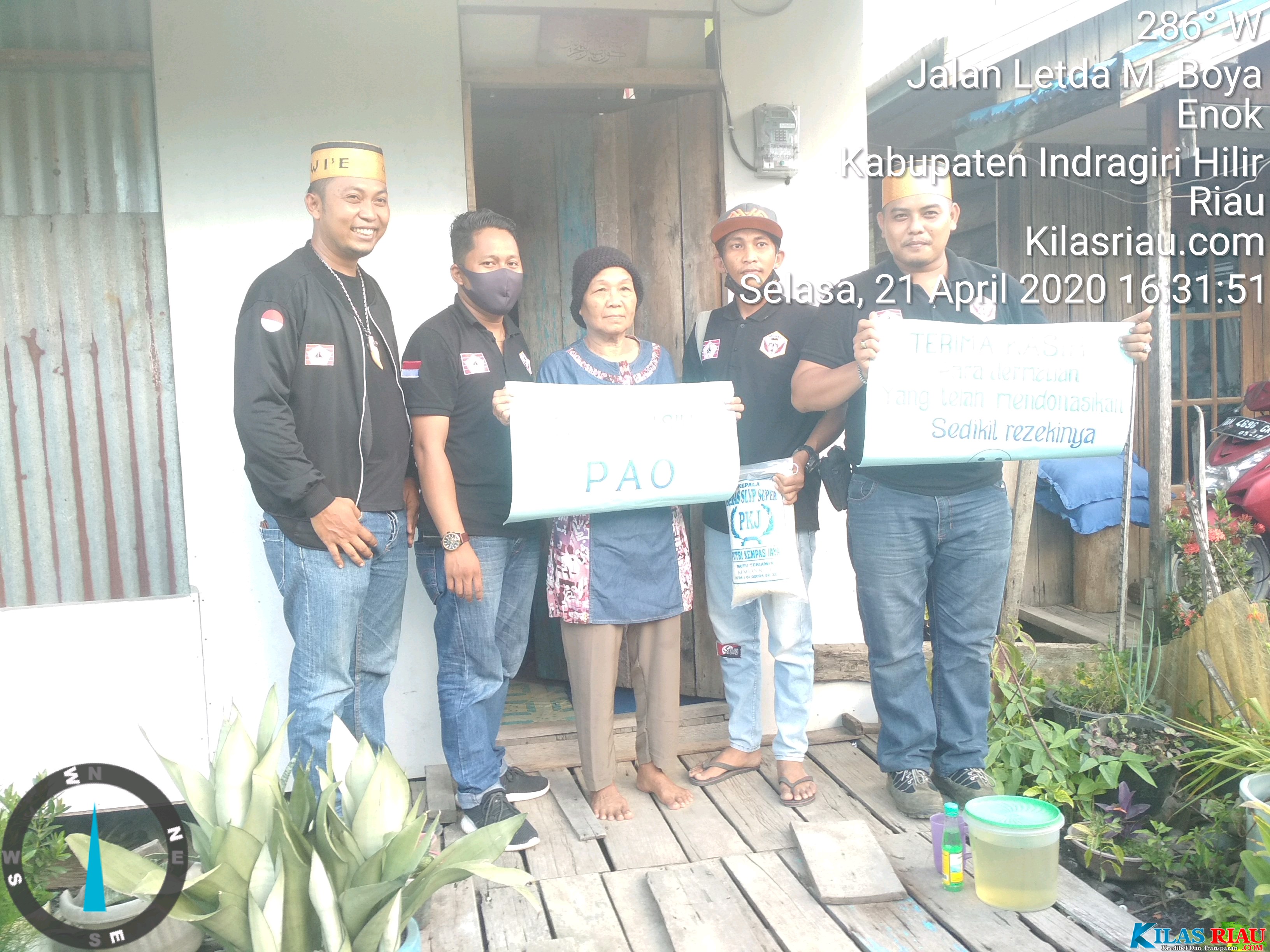 KILASRIAU.com - Jelang Bulan Ramadhan dan suasana masih dalam situasi pandemik, Pemuda Kreatif Kecamatan Enok bersama Pallapi Arona Ogi'e (PAO) menyalurkan bantuan kepada masyarakat yang terdampak covid-19, Selasa (21/4/2020).