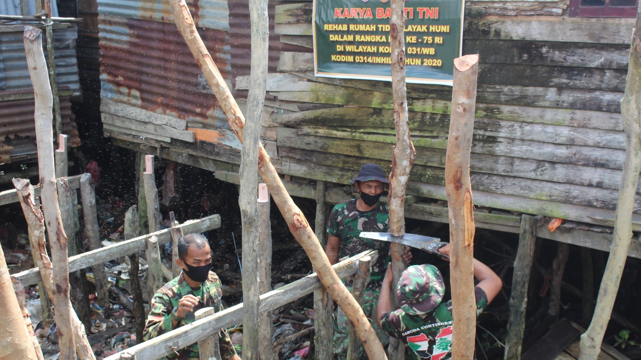 Dandim 0314/Inhil Letkol Inf Imir Faishal yang diwakili Perwira Seksi Teritorial (Pasi Ter) Kodim 0314/Inhil Kapten Inf Anwarsyah Siregar yang juga ikut berjibaku mengkomandoi pengerjaan rehab rumah itu mengatakan, program rehab Rumah Tidak Layak Huni (RTLH) masuk dalam daftar kegiatan Karya Bakti TNI Satuan Komando Kewilayahan TA 2020.