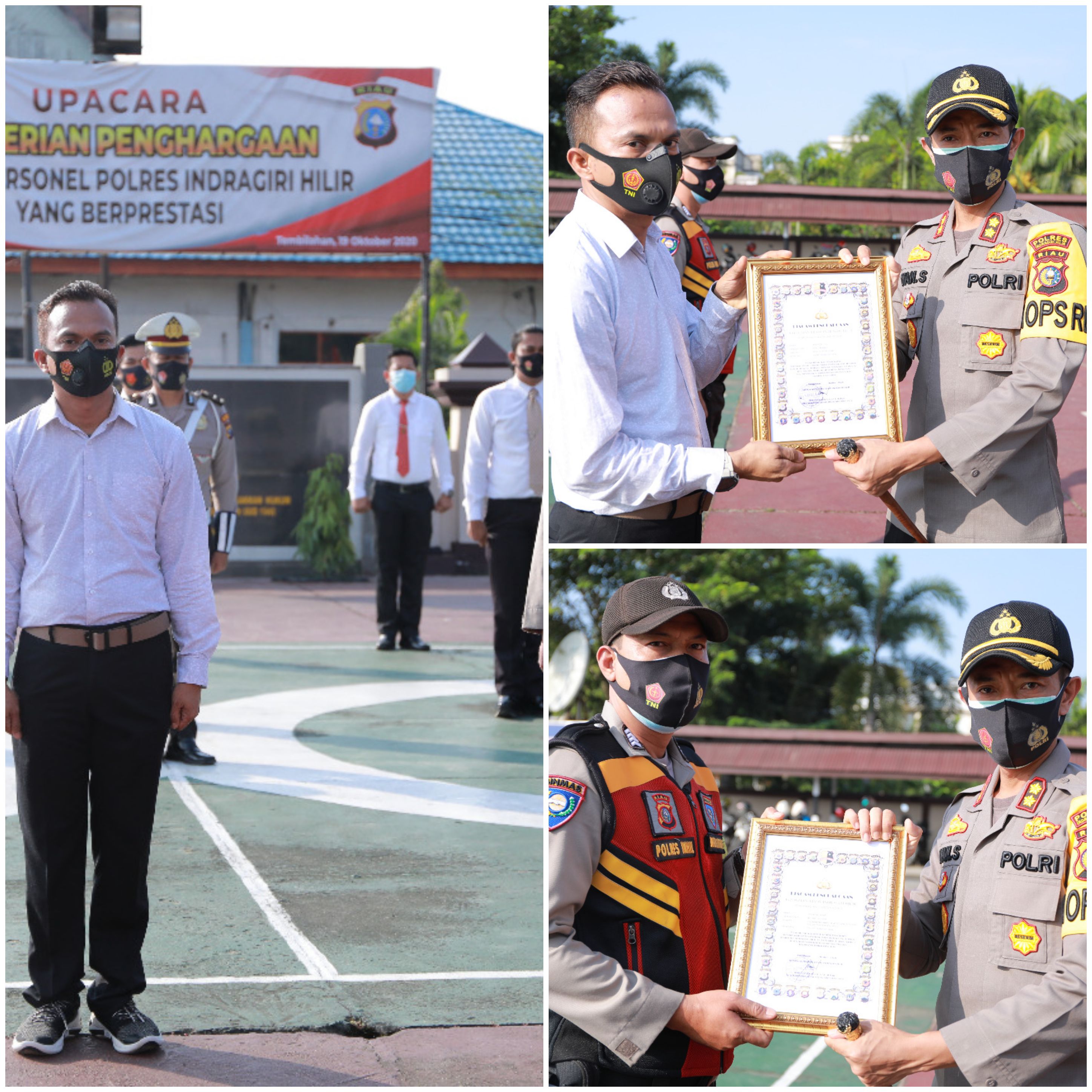 Pemberian penghargaan tersebut dilaksanakan dengan cara upacara dilapangan Apel Mapolres Inhil. Bertindak Inspektur upacara Kapolres AKBP Dian Setyawan dengan perwira AKP Rizki Hidayat dan Komandan Upacara Kanit Diyaksa Sat Lantas Polres Inhil, Ipda Yulinas Kenedi.