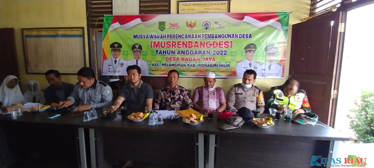 KILASRIAU.com - Bertempat di balai Kantor Desa Bagan Jaya Kecamatan Pelangiran telah melaksanakan Musyawarah Rencana Pembangunan Desa (MusrenbangDes) Tahun 2022, Minggu (31/01).