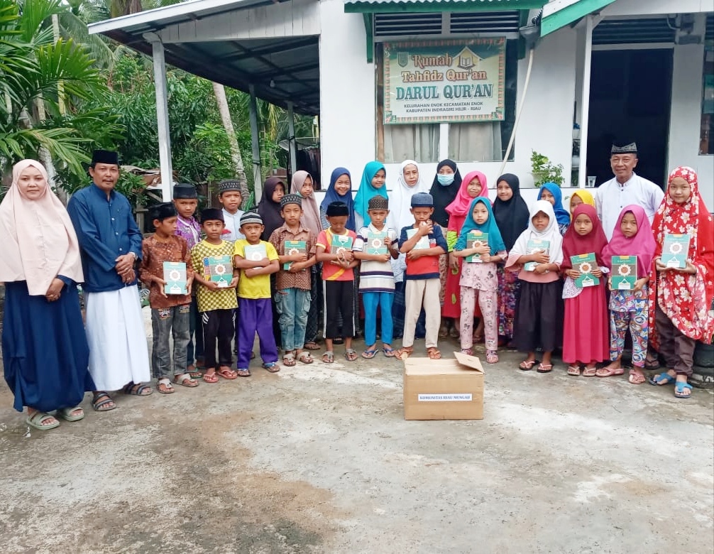 "Kurang lebih 47 eksemplar masing-masing untuk Rumah Tahfidz Qur'an Darul Qur'an sebanyak 25 eksemplar yang beralamat di Jalan Cermi Ujung Kelurahan Enok dibawah Pimpinan Ustdz Yasin ( Ketua MUI Kecamatan Enok) dan juga untuk Masjid Baitul Taqarrub Kampung Tengah Kelurahan Enok sebanyak 22 eksemplar," ucapnya.