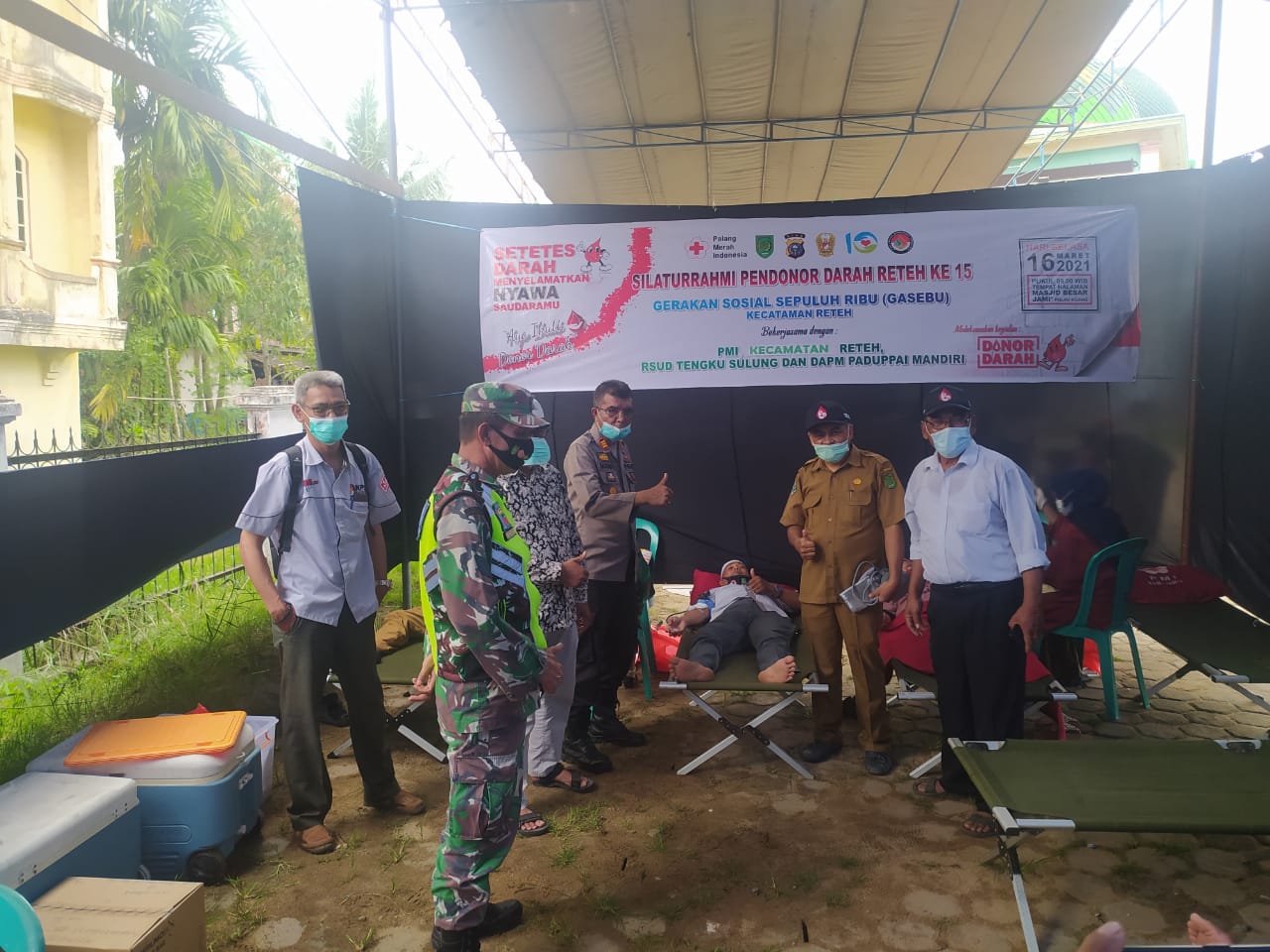 Hadir dalam kegiatan donor darah hari ini yakni tim dari PMI Kabupaten Indragiri Hilir dan beberapa anggota PMI Kecamatan Reteh, Kapolsek Reteh dan anggota, Danramil 07/Reteh dan anggota, serta Direktur Rumah Sakit Tengku Sulung Kecamatan Reteh dr. Iswandi beserta staf, pengurus Gasebu dan Komunitas Emma Emma Gasebu, Tenaga Pendidik dan Tenaga kesehatan lainnya. (Sr)
