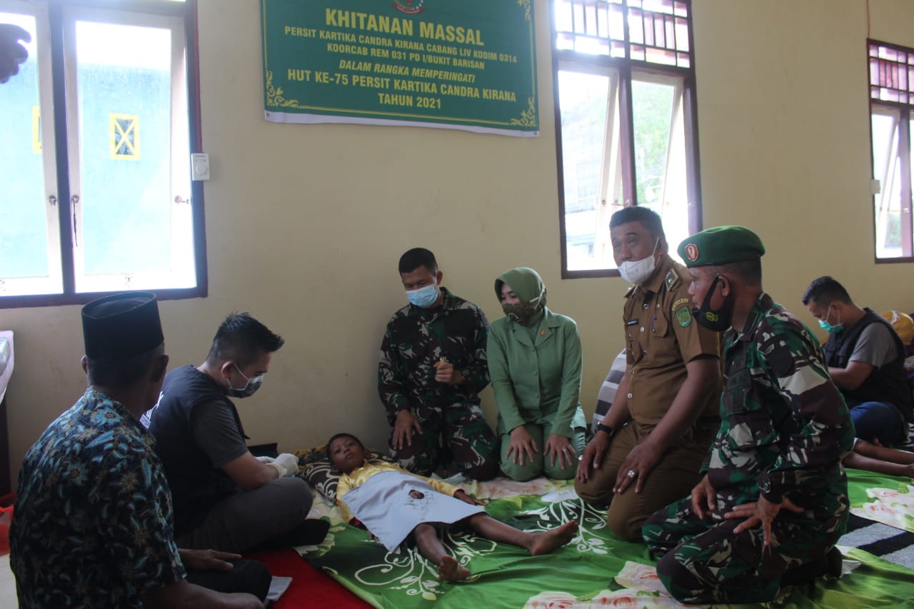 HUT ke - 62 Korem 031/WB, Kodim Inhil Laksanakan Bhakti Sosial Khitanan Massal Sekaligus Pemberian Tali Asih