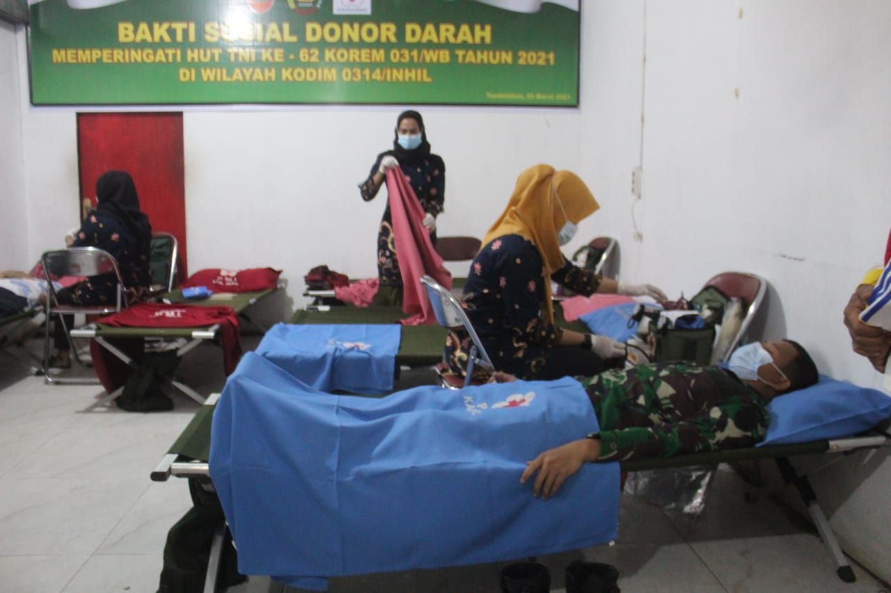 Hut Korem 031/Wira Bima ke-62, Kodim lnhil Gelar Kegiatan Sosial Donor Darah