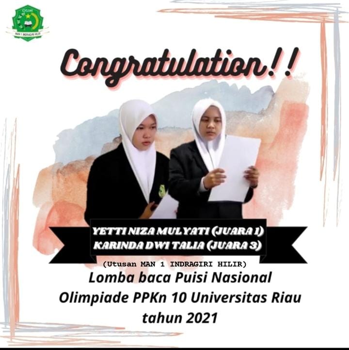 Raih Juara Puisi Tingkat Nasional, Siswi MAN I Inhil Ini Akan Diberikan Reward oleh Kemenag