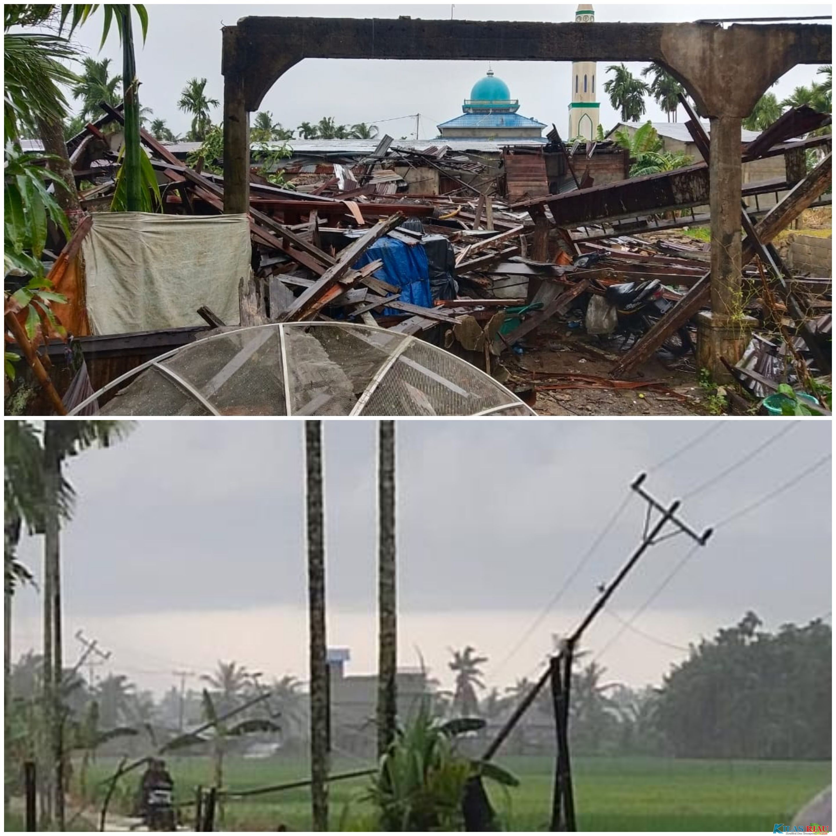 "Rumah rusak berat 9 unit, rusak ringan 12 unit dan 10 tiang listrik tumbang saat ini lampu padam, diperkirakan kerugian material lebih kurang Rp. 200.000.000 (dua ratus juta)," ungkapnya.