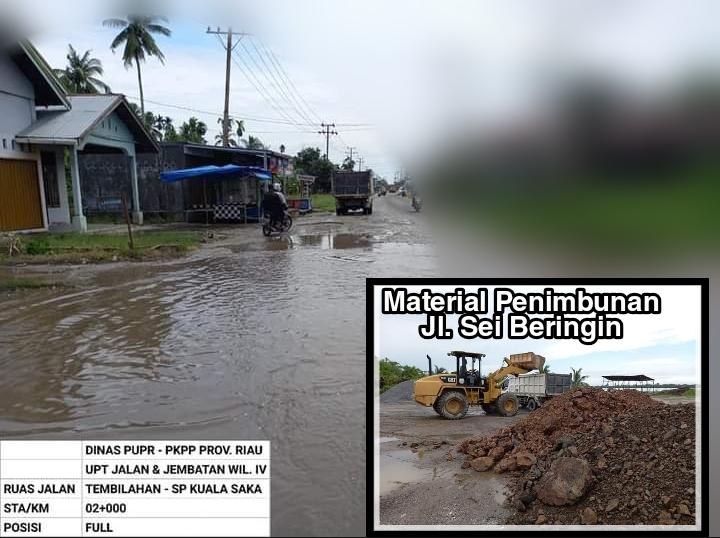 KILASRIAU.com - Material perawatan ruas jalan Sei Beringin kelurahan Sungai Beringin Kecamatan Tembilahan, sudah tiba di kelurahan Tempuling namun belum bisa diarahkan untuk dikerjakan karena ruas jalan Sei Beringin masih tergenang air setelah hujan.