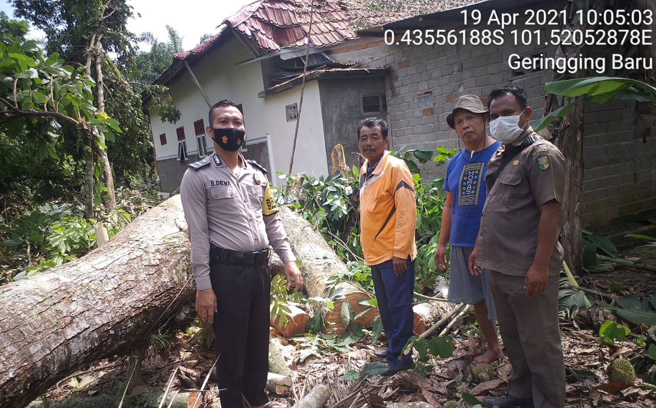 Salah satunya di Kecamatan Benai, dan Kecamatan Sentajo Raya wilayah hukum Polsek Benai, ada 3 (tiga) rumah tempatnya di Desa Geringging Baru yang rusak di bagian dapur dikarenakan robohnya pohon akibat dari angin kecang.
